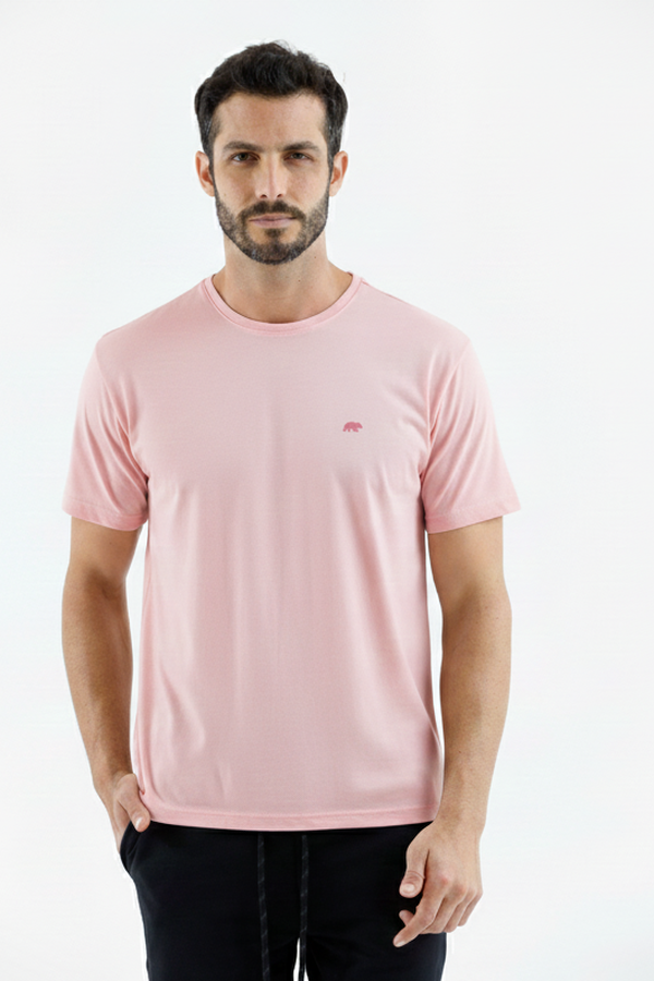 Nossa Camiseta Masculina Manga Curta Algodão Pima na cor Rosa Prisma com bordado Urso é a escolha certa para o homem moderno.