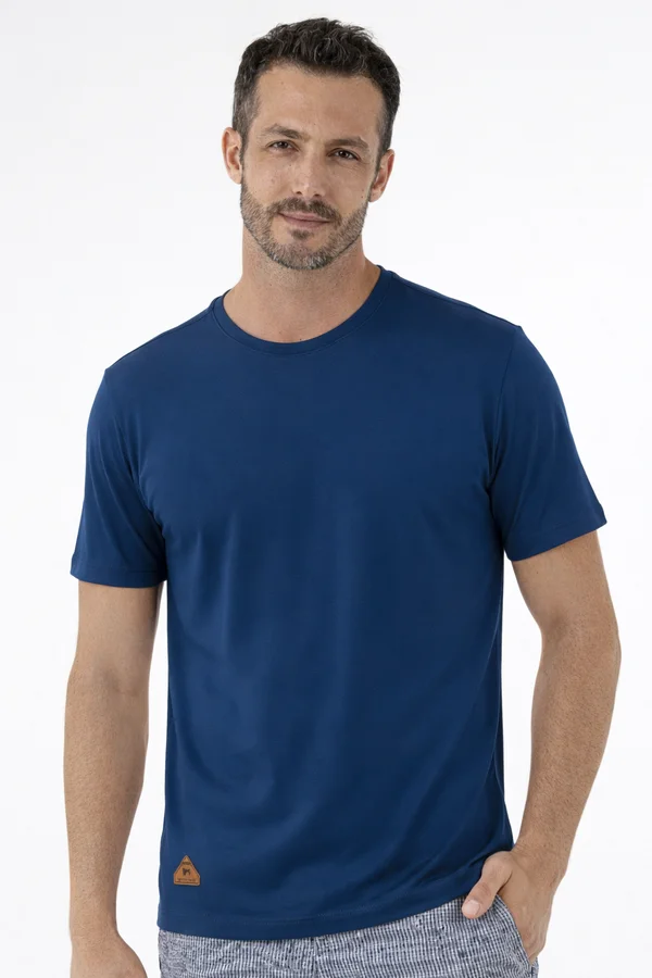 Uma peça essencial no guarda-roupa masculino é a nossa Camiseta Masculina Manga Curta Básica com malha Premium na cor Azul Náutico.